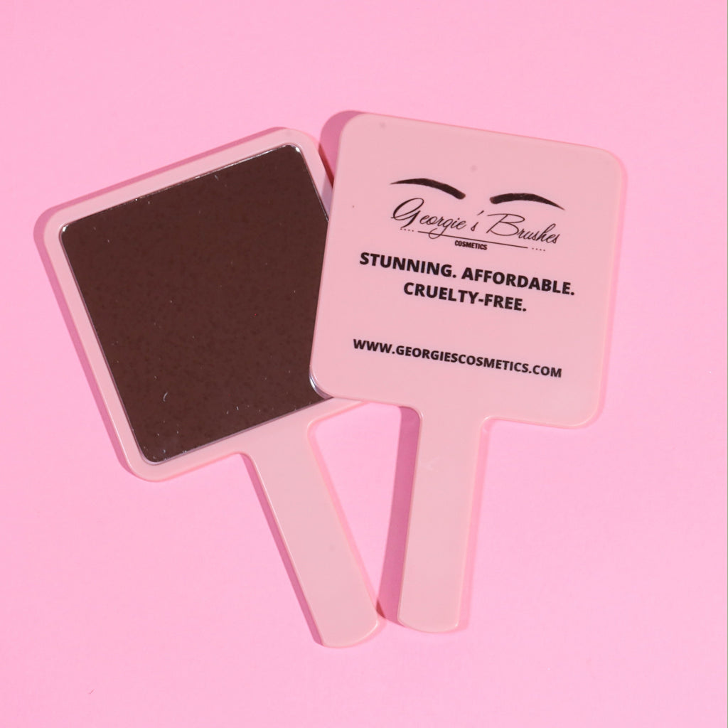 Hand-held compact mirror with the perfect size that fits anywhere.